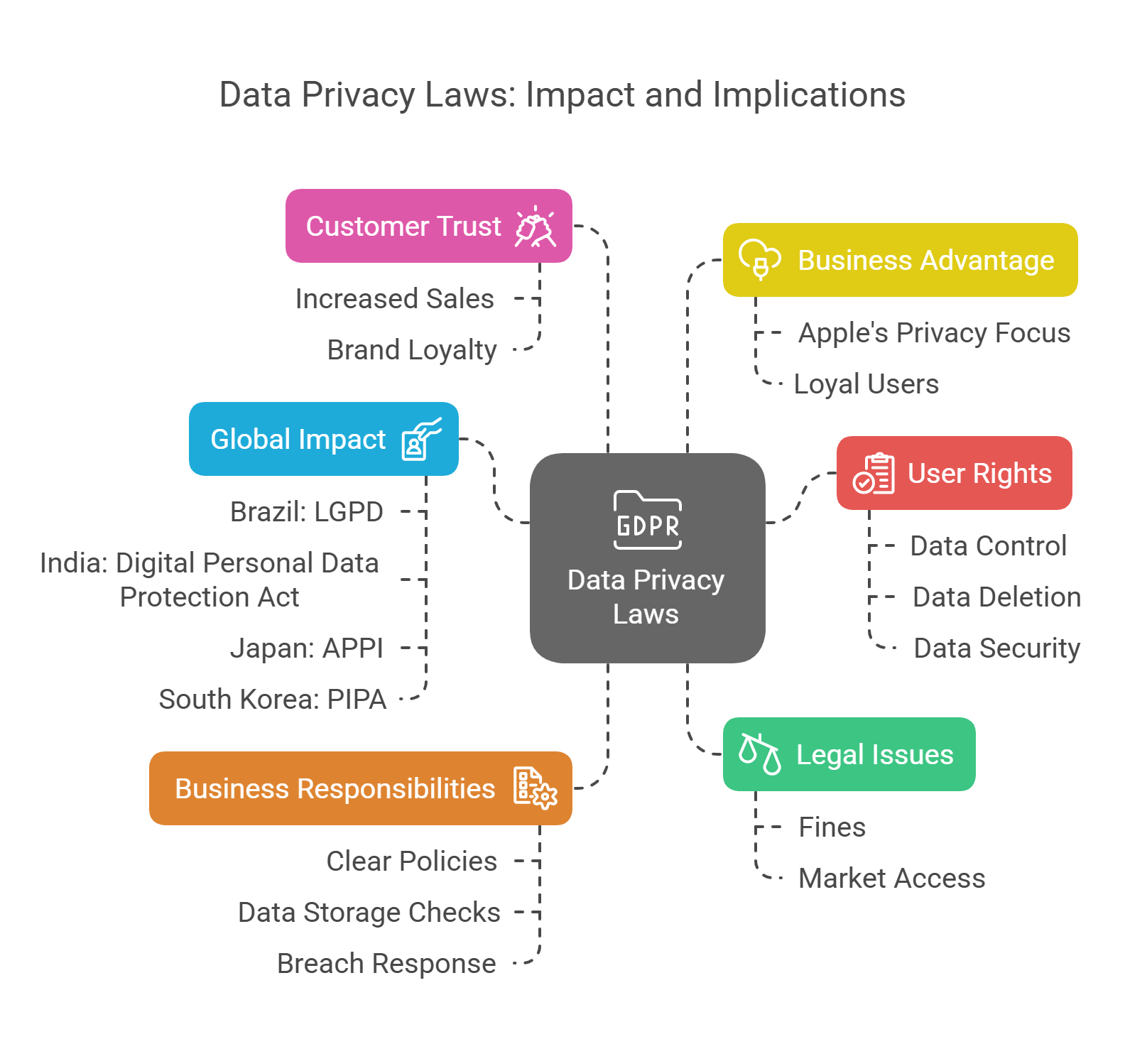 Data privacy laws are rules that tell companies how to handle your personal data. These laws make sure your information is safe and not misused.