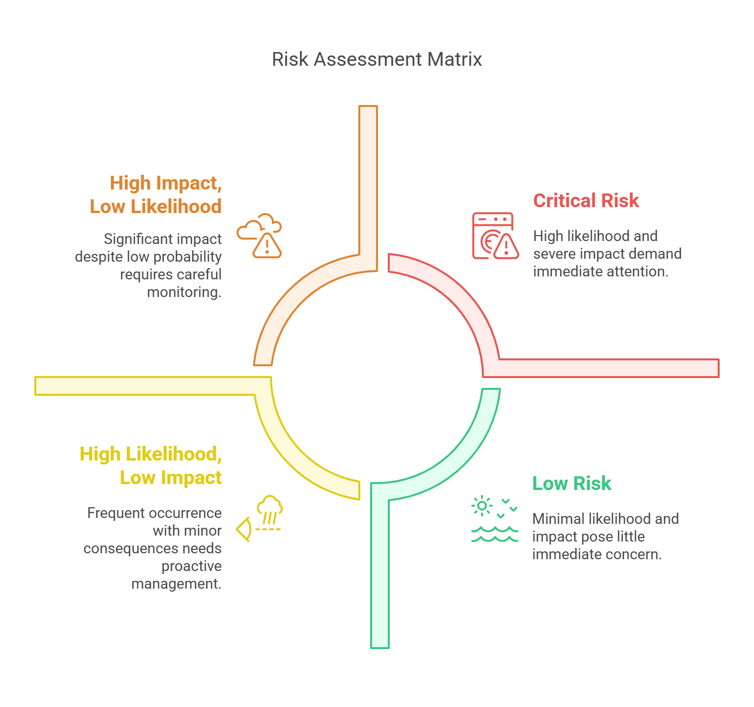 - Evaluate how likely risks are and their impact.