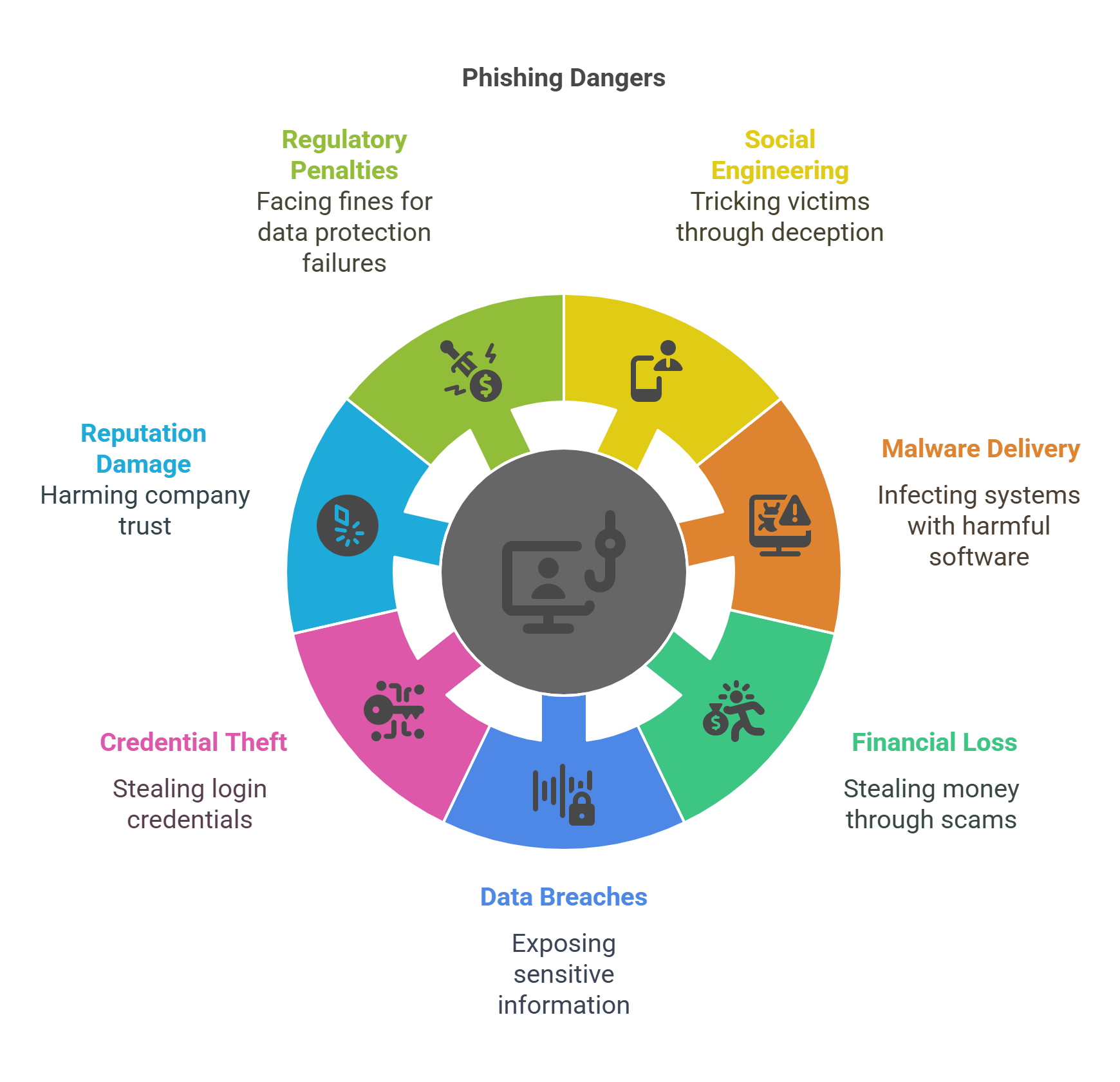 Phishing can expose sensitive information, leading to legal problems and reputation damage.
