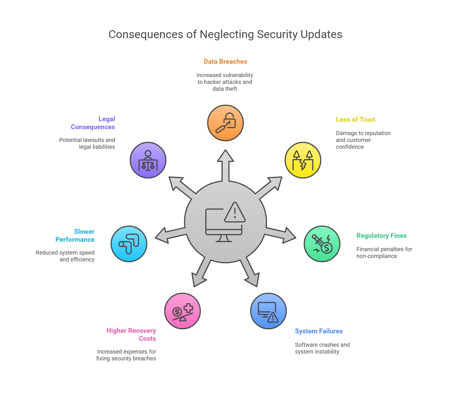 Not applying security updates can lead to serious consequences. Here are seven dangers of neglecting them: