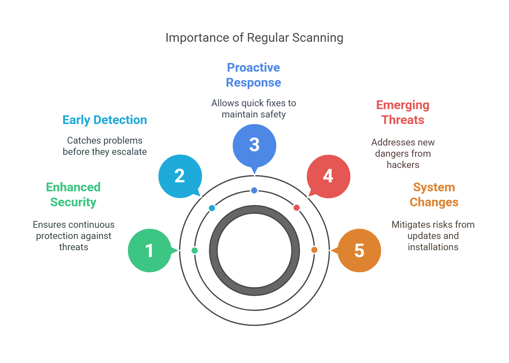 New threats come out every day. If you only scan once, you might miss something new. Scanning often helps you catch problems early. That way, you can fix them fast and stay safe.